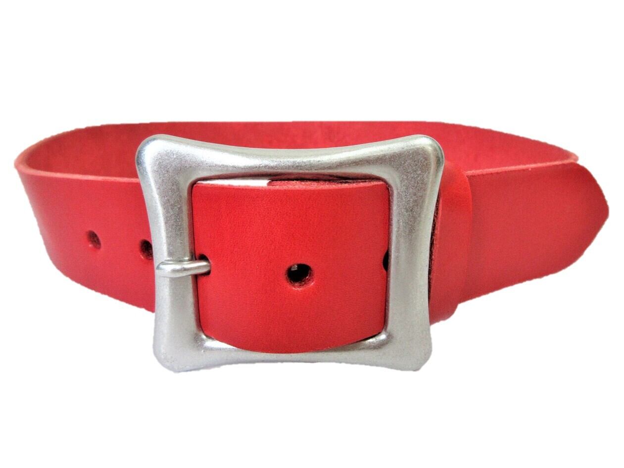 ベルトの幅は40mm、革の厚みは 4mm(多少の誤差はあります。)色は赤色です。