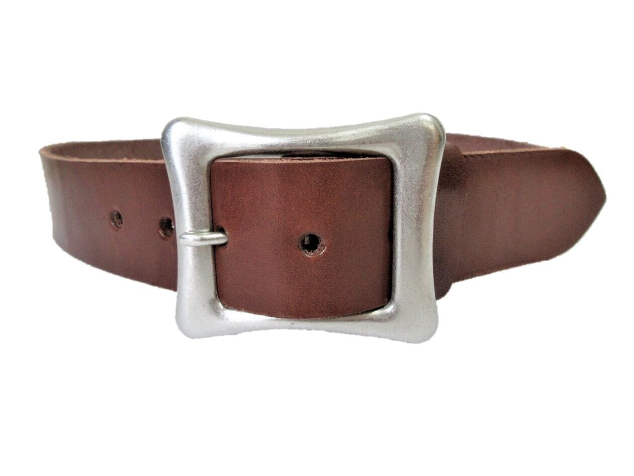 栃木レザーベルト(チョコ)ニッケルバレル鍍金バックル 40mm幅一枚革