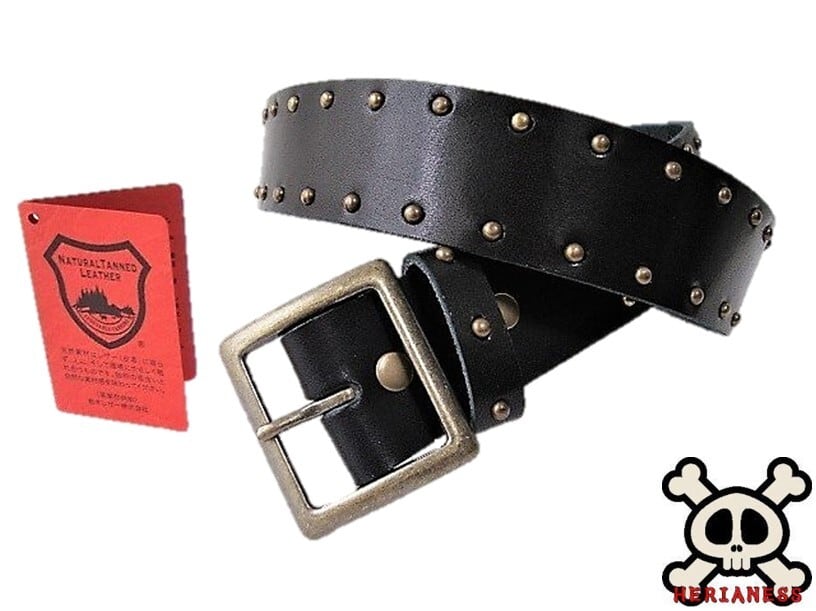 栃木レザー サイドラインスタッズベルト 黒 ヴィンテージタイプ 40mm幅 一枚革